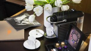 L’hôtel Le Six séduit par son design élégant et contemporain, offrant un mélange harmonieux de modernité et de raffinement. Les espaces communs, tels que le hall d’entrée et le salon, sont agencés avec soin pour créer une ambiance chaleureuse et accueillante. Les matériaux haut de gamme, les lignes épurées et les touches artistiques ajoutent une touche de sophistication à l’ensemble de l’établissement. Que ce soit pour se détendre dans le salon confortablement aménagé, travailler dans l’espace de coworking moderne ou profiter de la terrasse extérieure, l’élégance du design se décline dans chaque recoin de l’hôtel.
